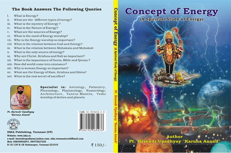 The concept of energy is pervasive not only in physics but in the rest of the sciences as well. The Sanskrit word ENERGY can be translated as meaning "power”. Most significantly, Energy or Shakti is an exclusively feminine principle. Shakti is synonymous with the great Devi, or the Great Goddess of Hinduism. Karuna Anand says Adishakti Ma Dakshina Kali is the First Energy of Universe and explains in detail in his Book. He says Brahma, Vishnu and Shiva are helpless without her inspiration. She is omnipresent in Hindu society via her many forms. We worship her in form of Female but she is formless and takes different forms in order to fulfill the deed of deities.