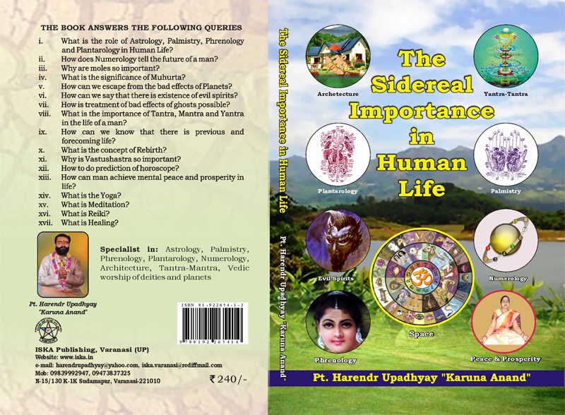 The Book "Sidereal Importance in Human Life” by Pt. Harendr Upadhyay” Karuna Anand" is commendable work. After meritious research in field of Astrology, Tantra, Ayurveda and Yoga author describe basic views of occult science. This book gives many unanswered question of occult science. It is very useful to the readers who are curious to know about Indian occult Science.