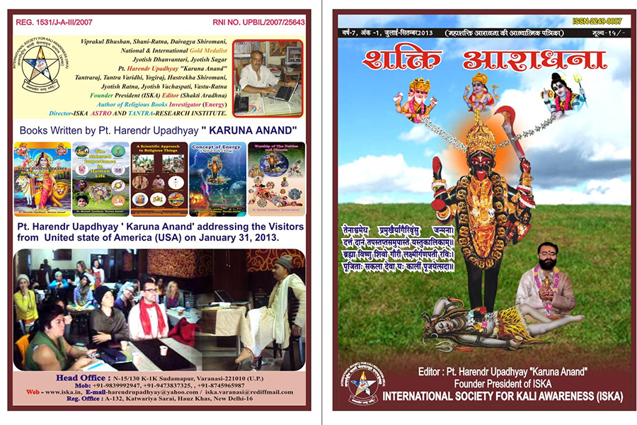 Followers of ISKA as well as visitors of foreign countries who are interested to know Indian culture and religion often ask mentions. In order to answer the questions. ISKA has published books on Indian occult science and philosophy. Thus the main aim of publication is to spread the knowledge of the east all over the world. All books published by ISKA are for self – realization. HINDU GODS GODDESSES: Spiritual and scientific approach in English and Hindi is a unique work. “Valmiki Ramayan” is the first epic of Sanskrit. ISKA has published “Valmiki Ramayan me moolyabodha” written by Dr. M.P. Mishra in order to reveal the values of Indian life. Shakti Aradhana, quarterly research magazine is published to highlight activities of ISKA as well as new knowledge and science.
